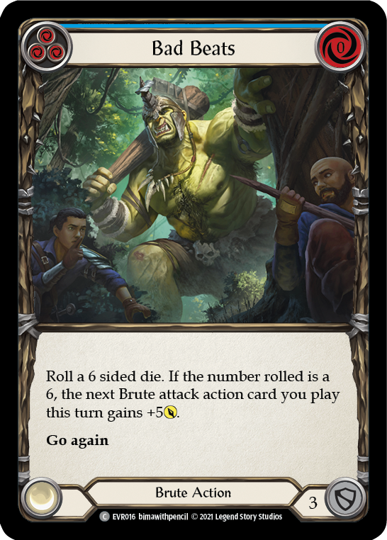 Roll a 6 sided die. If the number rolled is a 6, the next Brute attack action card you play this turn gains +5[Power].
